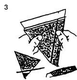 6.9.6 С помощью универсального ножа вырезают в гипсокартонном листе отверстие по обведенному контуру (рисунок 45, 2), после чего из куска ГКЛ вырезают заплату, размер которой на 5 см превышает размер трафарета. Приложив трафарет к обратной стороне заплаты, обводят его карандашом. На обратной стороне заплаты выполняют надрез по обведенному контуру и, обломав край заплаты по обведенному контуру, оставляют по ее краю полосу лицевого картона шириной 5 см (рисунок 45, 3).