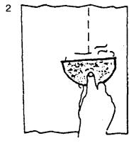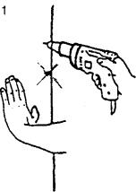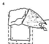 6.9.5 При заделке малых отверстий (рисунок 45, 3) в гипсокартонных листах сначала вырезают из картона трафарет размером, несколько большим заделываемого отверстия, прикладывают его к отверстию и обводят карандашом (рисунок 45, 1).