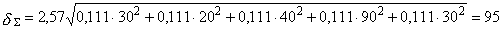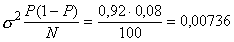 Определяем дисперсию величины Р по п. 2.