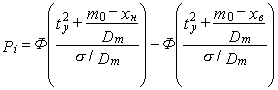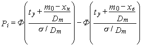 6. При проведении расчетов по пп. 2-5 показатели выполнения задания по качеству для технологических операций должны быть заданы с учетом возможной отбраковки дефектных деталей в процессе операционного контроля, т.е. распределение контролируемого параметра х на выходе ТС операции обработки следует рассматривать после завершения контрольной операции, а вероятность выполнения задания по j-му параметру качества продукции на рассматриваемой операции вычисляют по формуле