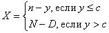 6. При одноступенчатом контроле с условной разбраковкой план контроля П (n, с, c1) характеризуется объемом случайной выборки n, приемочным и браковочным числами с, c1 (с<c1<n), а по результату контроля выборки партия объемом N принимается, если число дефектных изделий в выборке y£c, подвергается сплошному контролю, если с<у<с1, и забраковывается, если в партии число дефектных изделий y£c1. Результаты контроля партии являются обнаруженные в партии число дефектных деталей Y и число годных изделий X, причем: