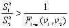 F1-a(v1, v2) - квантиль распределения Фишера уровня 1 - a с v1 и v2 степенями свободы;