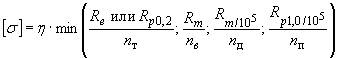 где [s]i = [s]1; [s]2; ... [s]n - допускаемое напряжение для расчетного срока эксплуатации при температурах ti (i = l, 2 ...);