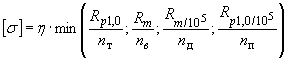 Для условий испытаний сосудов и аппаратов из аустенитных сталей допускаемое напряжение определяют по формуле