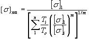 1.4.8. Для элементов сосудов и аппаратов, работающих в условиях ползучести при разных за весь период эксплуатации расчетных температурах, в качестве допускаемого напряжения разрешается принимать эквивалентное допускаемое напряжение [s]экв, вычисляемое по формуле