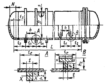 Для сосудов и аппаратов группы 3, 4 по «Правилам устройства и безопасной эксплуатации сосудов, работающих под давлением» Госгортехнадзора СССР коэффициент запаса прочности по временному сопротивлению nв допускается принимать равным 2,2.