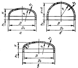 цилиндрических обечаек и конических элементов, выпуклых и плоских днищ для