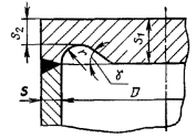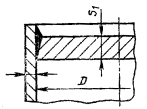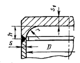 Толщина утоненной части днища в месте кольцевой выточки, мм (см) |