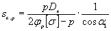 Расчетная толщина стенки конической обечайки, мм (см) |