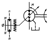 16. Насос-мотор регулируемый, с двумя направлениями вращения, пружинным центрированием нуля рабочего объема, наружным управлением и дренажом (сигнал n вызывает перемещение в направлении N) (см. приложения А и Б)
