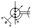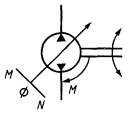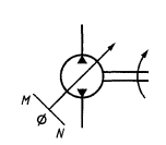 А.7. Линию, показывающую позиции устройства управления, и обозначения позиций (например, М - Æ - N) наносят перпендикулярно к стрелке управления. Знак Æ обозначает позицию нулевого рабочего объема, буквы М и N обозначают крайние позиции устройства управления для максимального рабочего объема. Предпочтительно использовать те же обозначения, которые нанесены на корпусе устройства.