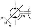 А.3. Для моторов стрелка начинается на входной линии потока и заканчивается острием стрелки на выходном валу.