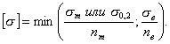 1.3. Допускаемое напряжение при расчете по предельным нагрузкам конструктивных элементов из углеродистых, низколегированных и среднелегированных сталей вычисляют по формуле