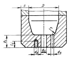 - диаметр несквозного отверстия или наружный диаметр резьбы несквозного отверстия, мм (см) |