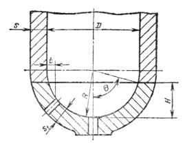 для днищ с радиусным переходом и днищ с проточкой (черт. 2 и 3)