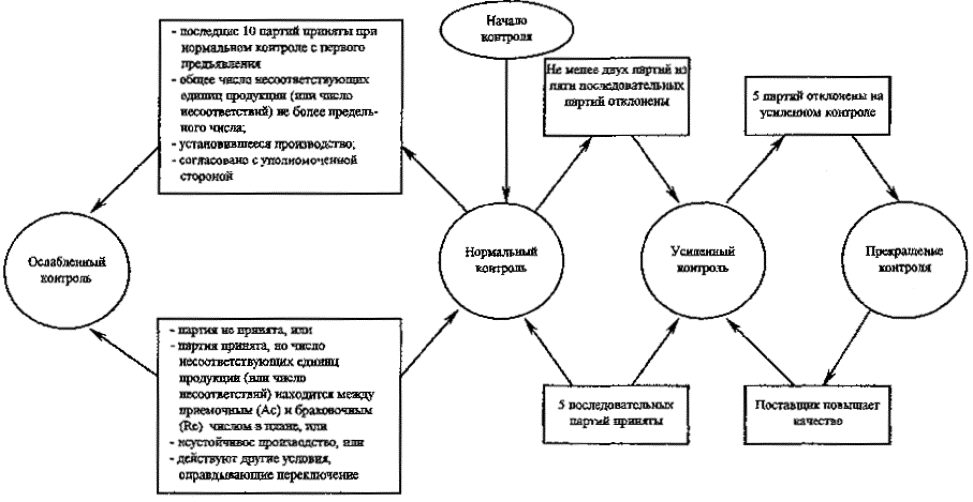 3.8 схема выборочного контроля (выборочная схема): Сочетание выборочных планов контроля и правил переключения (9.3).