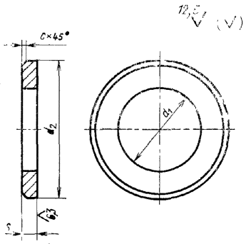 2. При изготовлении шайб методом штамповки предельные отклонения по внутреннему диаметру - по H14, по наружному диаметру - по h14, толщине шайб - по стандартам на исходный материал.