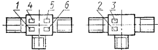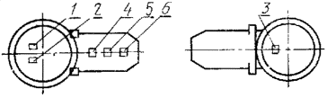 1 - товарный знак предприятия-изготовителя; 2 - марка стали: 3-условное давление; 4 - номер партии и порядковый номер детали в партии; 5 - условный проход; 6 - клеймо отдела технического контроля.
