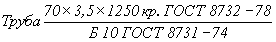 Труба с наружным диаметром 70 мм, толщиной стенки 3,5 мм, длиной, кратной 1250 мм, обычной точности изготовления, из стали марки 10, изготовляется по группе Б ГОСТ 8731: