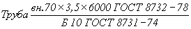 Труба с внутренним диаметром 70 мм, толщиной стенки 3,5 мм, длиной 6000 мм (мерная длина), обычной точности изготовления, из стали марки 10, изготовляется по группе Б ГОСТ 8731: