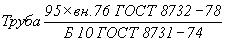 Труба с наружным диаметром 95 мм, внутренним диаметром 76 мм, допускаемой разностенностью немерной длины, обычной точности изготовления, из стали марки 10, изготовляется по группе Б ГОСТ 8731: