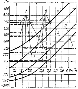 А - минимально допустимые значения избыточного давления и расхода защитного газа при которых должны срабатывать блокировки; В - минимальные значения избыточного давления и расхода защитного газа при нормальной работе электродвигателя с учетом значения дифференциала прибора контроля избыточного давления
