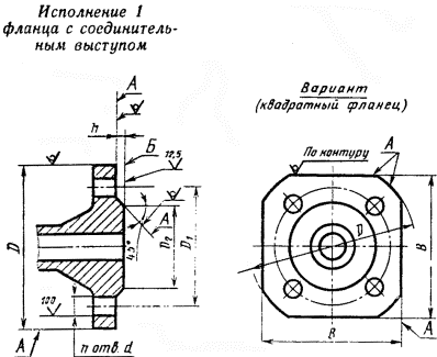 7. Допускается фланцы всех исполнений, имеющие 4 отверстия под болты (или шпильки), изготовлять квадратными на Ру £ 4,0 МПа (40 кгс/см2).