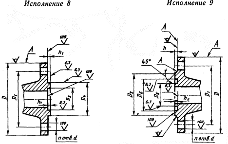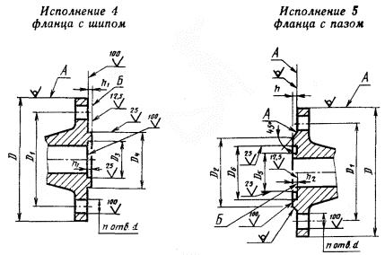 4. Допускается изготовлять фланцы других конструкций с другими исполнениями уплотнительных поверхностей, в том числе с уплотнительными канавками на соединительном выступе или приварном кольце, с обязательным выполнением присоединительных размеров по табл. 2 - 11.