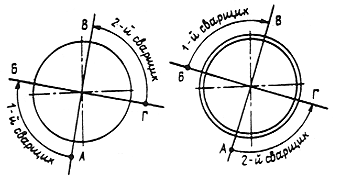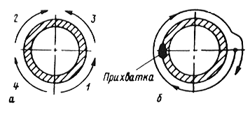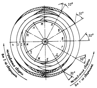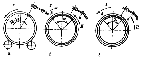 1.2.6. В монтажных условиях стыки труб из теплоустойчивых низколегированных сталей при толщине стенки более 12 мм и из прочих сталей при толщине стенки более 20 мм следует сваривать неповоротными во избежание появления трещин в первых слоях шва во время поворота. Если сварка производится на вращающихся устройствах, то стыки труб независимо от толщины стенки можно сваривать поворотными.