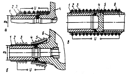 б) стыки труб поверхностей нагрева, импульсных трубок контрольно-измерительных приборов, напорных маслопроводов системы смазки, стыки трубопроводов системы регулирования турбины, трубопроводов, подвергающихся гуммированию, следует сваривать преимущественно комбинированным способом; при толщине стенки труб до 10 мм можно все сечение шва выполнять аргонодуговой сваркой;
