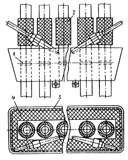Если на сборочной площадке или в главном корпусе сварку труб будут выполнять одновременно более 10 сварщиков, рекомендуется использовать многопостовые источники питания (выпрямители или преобразователи) с кольцевой разводкой сварочного тока. Аналогичные разводки рекомендуется применять для термообработки сварных соединений током средней частоты.