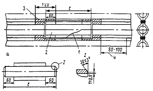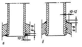 в) для соединения стыков труб диаметром до 57 мм при толщине стенки 8 мм можно применять газовую ацетиленокислородную сварку; в отдельных случаях для трубопроводов, на которые не распространяются правила Госгортехнадзора России, этот способ можно применять для сварки трубопроводов диаметром до 150 мм.