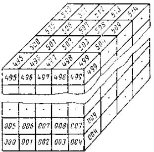 Ящики 1, 3 и 4-го штабелей, контролируемых по верхней и боковым поверхностям, нумеруем от 000 до 514 каждый (черт. 5).