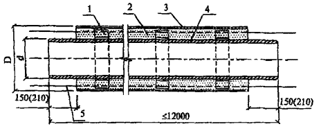 1 - центрирующая опора; 2 - изоляция из пенополиуретана; 3 - труба-оболочка из полиэтилена; 4 - стальная труба; 5 - проводники-индикаторы системы ОДК (показаны условно)