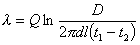 где t1и t2 - температура на поверхности трубы и изоляции, °С;