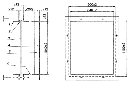 6.9.2. Испытания проводят на образцах размером [(1100×900) ± 5] мм, изготовленных вместе с испытываемой партией.
