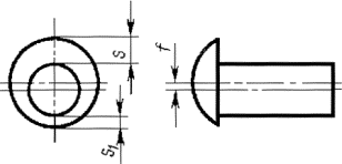 3.9. Отклонение от соосности головки относительно стержня заклепок определяют разностью размеров s и s1 (черт. 5), измеренных с помощью штангенглубиномера или микрометрического глубиномера. Допускаются другие методы контроля.