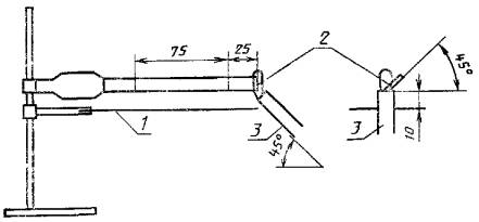 3.3. Штатив с зажимом для крепления образцов и горелку помещают в испытательную камеру или лабораторный вытяжной шкаф.