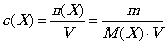 13. Молярная концентрация (концентрация количества вещества) с(Х) частиц, X, есть отношение количества вещества п(Х), содержащегося в системе (например, в растворе), к объему V системы, т.е.