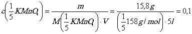 Если отнести молярную концентрацию к атомной группе KMnO4, то будет