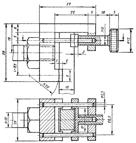 2. Упор и зажимная головка совмещены и указаны на черт. 3.