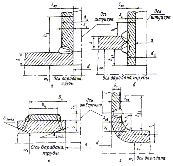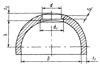 Методика определения диаметра неукрепленных отверстий, принятая в Нормах 1939 г., сохранена и в Нормах прочности 1950 г. Расчет укрепления отверстий основан на положении о компенсации вырезанного металла укреплением, надежно соединенным со стенкой сосуда.