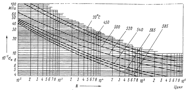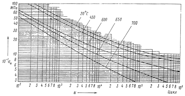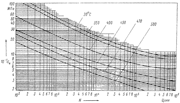 В Нормах введено рекомендуемое приложение «Поверочный расчет на усталость», в котором представлена методика поверочного расчета на усталость барабанов, сепараторов, коллекторов, трубопроводов и других деталей под действием переменных нагрузок. Приведена кривая допускаемой амплитуды переменных напряжений для углеродистой и легированной сталей при температуре 20°С, а также дана таблица (число циклов - амплитуда напряжений) для углеродистой стали при расчетной температуре стенки не более 400°С и для легированной стали при температуре не более 450°С.