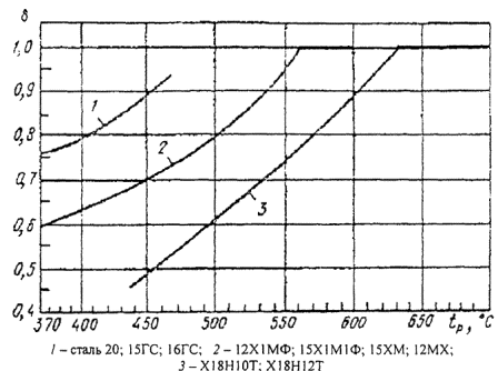1.4.1. Под расчетной температурой стенки t следует понимать температуру металла, по которой выбирается величина допускаемого напряжения для рассчитываемой детали котла или трубопровода.