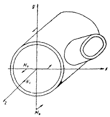 В качестве основной нагрузки, по которой должна определяться толщина стенки котельных элементов, в Нормах принято давление рабочей среды (внутреннее или наружное), величина которого задается при проектировании котла. Дополнительные внешние нагрузки (осевые усилия, изгибающие и крутящие моменты), действующие постоянно на рассчитываемый элемент, регламентируются соответствующими предельными значениями. Эти предельные значения установлены исходя из некоторого снижения общего запаса прочности детали по сравнению с запасом, принятым при расчете ее по основной нагрузке - давлению среды. Нагрузки от температурных напряжений учтены в расчете трубопроводов, в котором регламентированы предельные значения дополнительных напряжений от самокомпенсации температурных расширений.