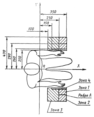 1. Центры рукоятей управления краном в нулевом положении органов управления должны находиться и зонах 1 - 3, указанных на чертеже.