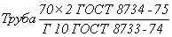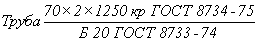 Труба с наружным диаметром 70 мм, толщиной стенки 2,0 мм, длиной, кратной 1250 мм, из стали марки 20, с поставкой по химическому составу (по группе Б) ГОСТ 8733: