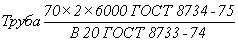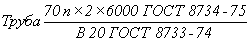То же, длиной 6000 мм (мерная длина), из стали марки 20, с поставкой по механическим свойствам и химическому составу (по группе В) ГОСТ 8733:
