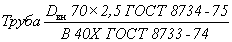 Труба с внутренним диаметром 70 мм и толщиной стенки 2,5 мм немерной длины, из стали марки 40Х, поставкой по группе В по ГОСТ 8733: