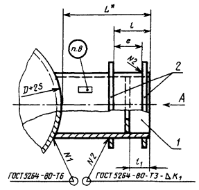 Примечание. Размер Dp необходимо корректировать в зависимости от фактического внутреннего диаметра оболочки для обеспечения допустимого зазора в сварном соединении в соответствии с ГОСТ 5264.